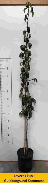 Sød og krydret smag. Middelstor grøn pære med gråbrune pletter. Aflang. Modner sidst i september og kan lagres i 2-3 måneder. Søjletræ med svag til middel vækst. Sund og hårdfør sort.