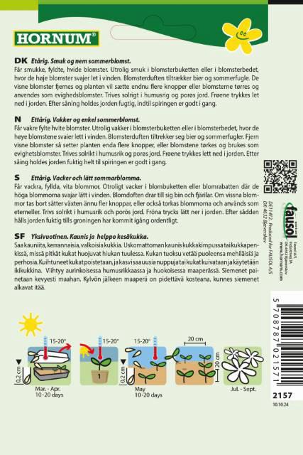 Flerårig. Blomsterglæde i mange år. (Posen giver ca. 80 Planter) Ideel som blomsterenplante, i naturhaven eller i den romantiske have. Får med årende hundredevis af blomster. Solrig. Ikke særligt krævende. Trives i alm., porøs jord. Sås i Apr/Sept. Blomstrer i 2. år Jun/Sept.