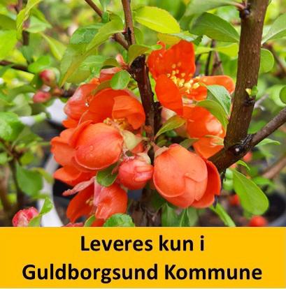 1,1,5 m.høj og bred, løvfældende busk, der får teglrøde blomster i april-maj.Får gul-grønne frugter, der sidder længe. Trives bedst i sol. Anvendes som solitærbusk eller i grupper.Frugterne kan syltes.