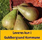 SØD OG SAFTIG. Stor brun-grøn pære med tyk skræl. Aflang og buttet. Meget stort udbytte. Modner i september. Lagres indtil januar. Middelkraftig vækst med oprette lange grene. Sundt træ.